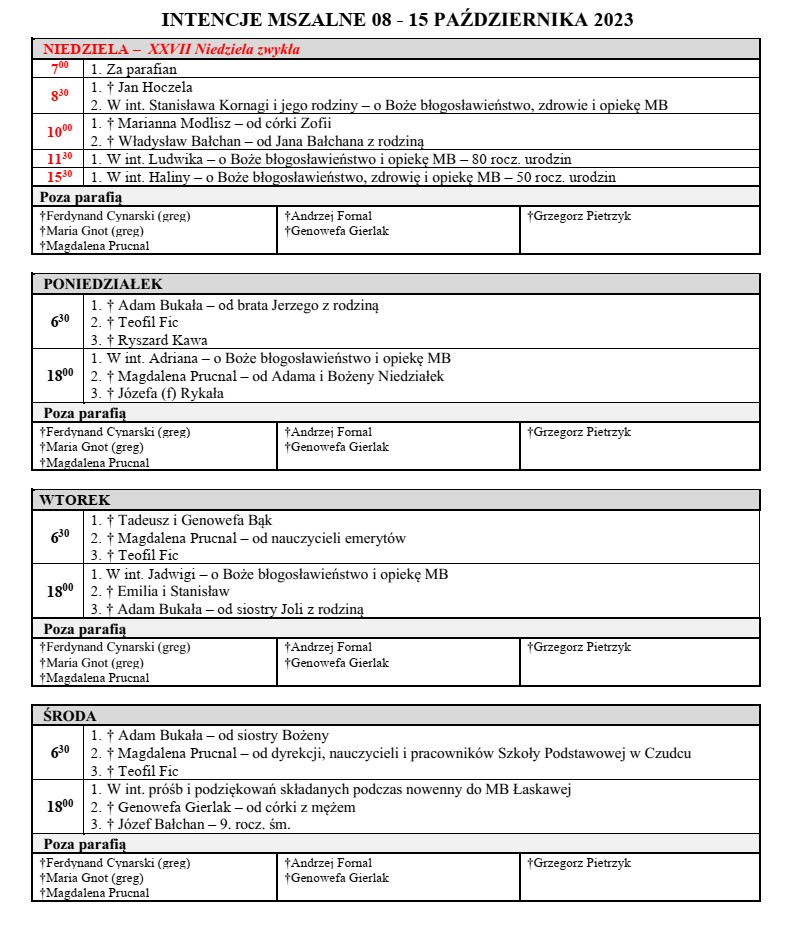 Intencje Mszalne