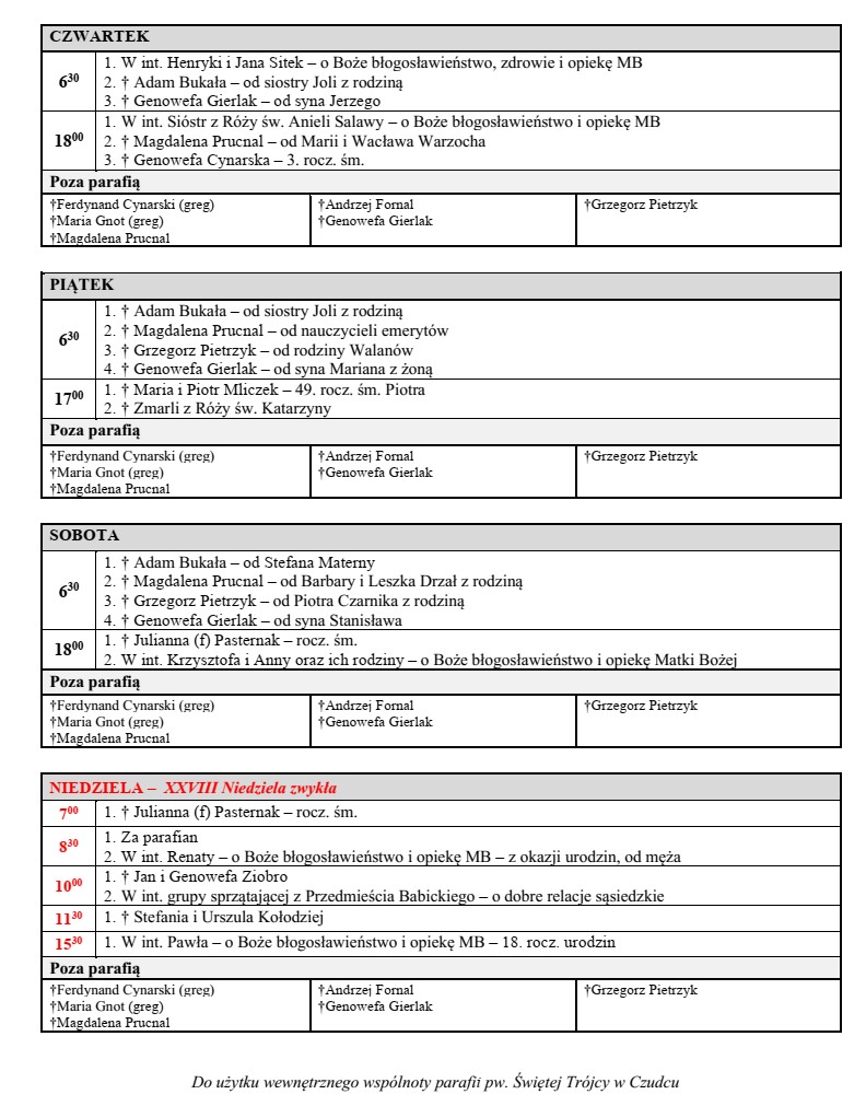 podczas każdej Mszy świętej (oprócz Mszy o 15:30)