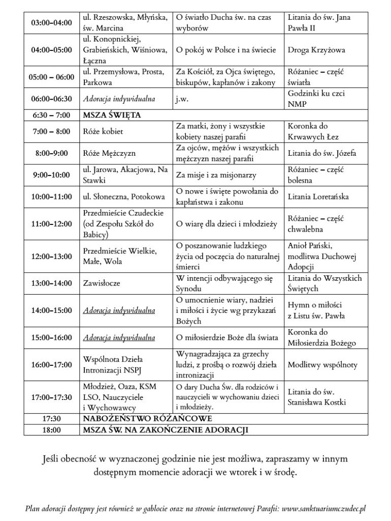 podczas każdej Mszy świętej (oprócz Mszy o 15:30)